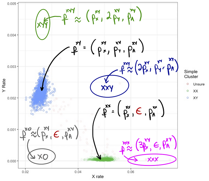 RChASM also returns two diagnostic statistics: (i) a posterior probability addressing whether contamination between XX and XY may explain the observed sex chromosomal aneuploidy, and (ii) a chi-squared statistic measuring whether the observed read counts are significantly divergent from the underlying distribution (and may represent abnormal sequencing/quality issues).